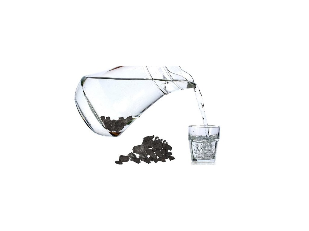 Nic se nevyrovná schopnosti šungitu čistit vodu od škodlivých příměsí. Na svém povrchu dokáže absorbovat 95% nečistot, odstraňuje zakalení a dodává vodě pramenitou chuť. Šungit odstraňuje z vody těžké kovy, koloidní železo z vodovodního potrubí, nitráty a nitrity, pesticidy, fenoly, dioxiny, ropné produkty, sloučeniny chlóru, radionuklidy, viry a bakterie. Zároveň dodává organismu prospěšné mikro a makroprvky a pohlcuje škodlivé záření. Šungitovou vodu je možné používat na kloktání, k výplachům úst a nosu při angínách, paradentóze a rýmě.